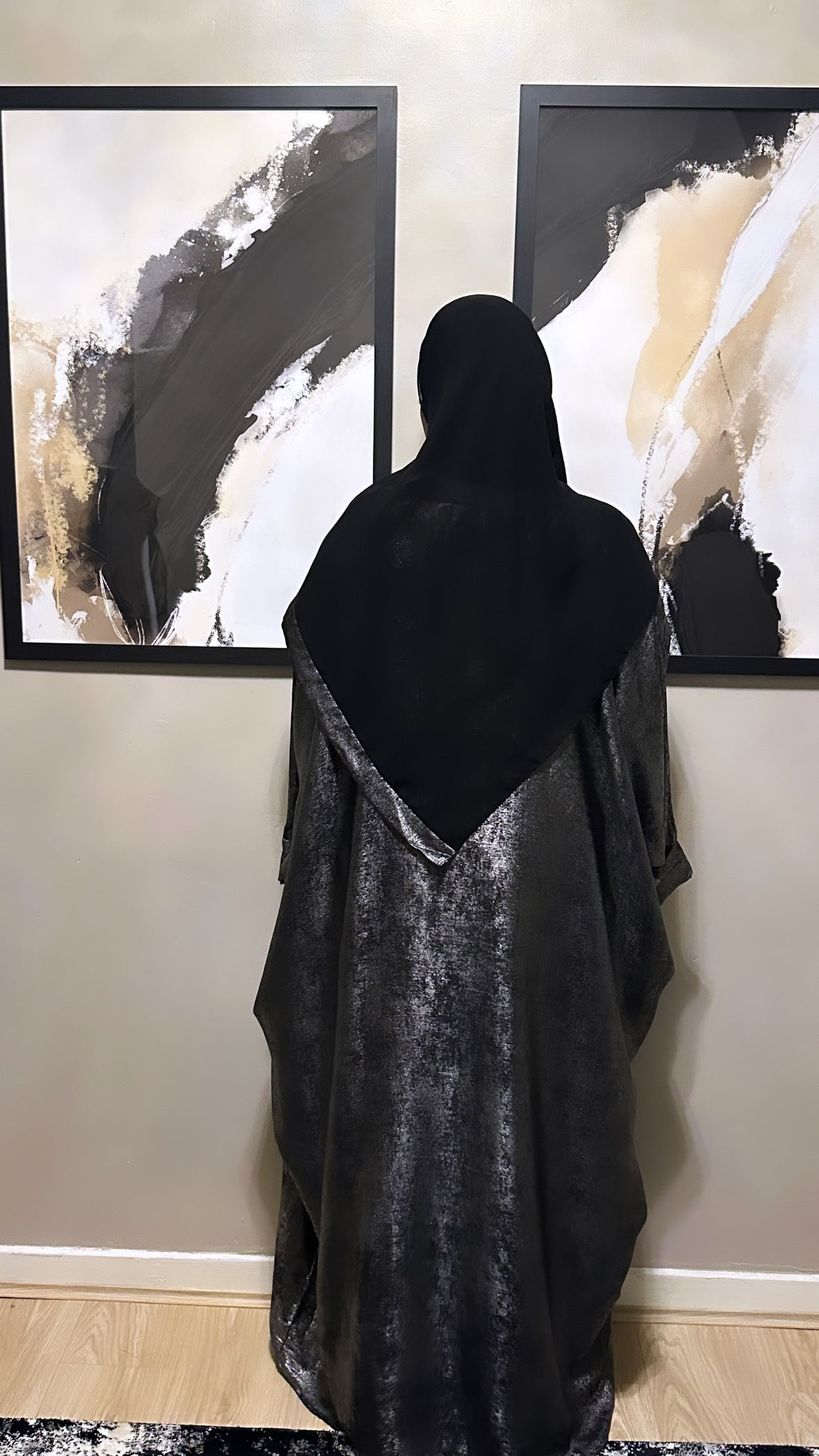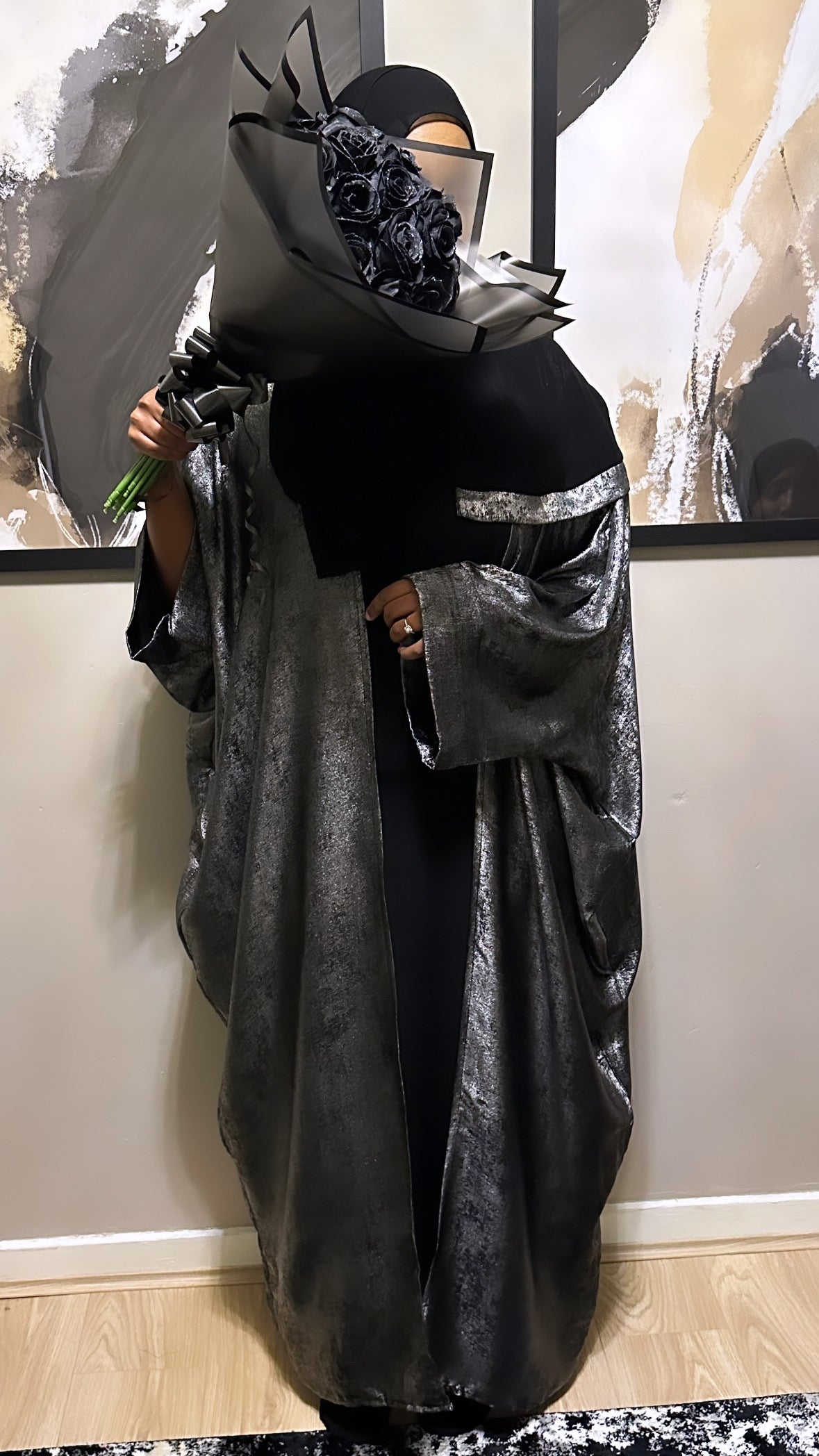 Don't miss out on adding our Batwing Open Metallic Abaya to your wardrobe collection