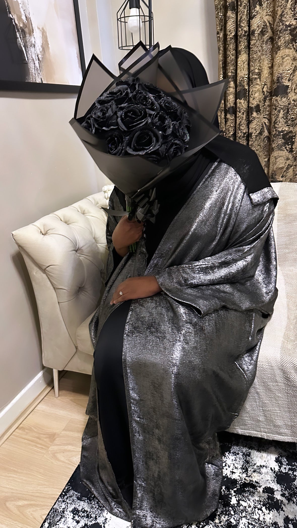 Introducing our luxurious Batwing Open Silver Metallic Abaya, crafted from a high-quality fabric with a metallic effect that adds an extra touch of elegance. This abaya is perfect for special occasions and is sure to make you stand out from the crowd.