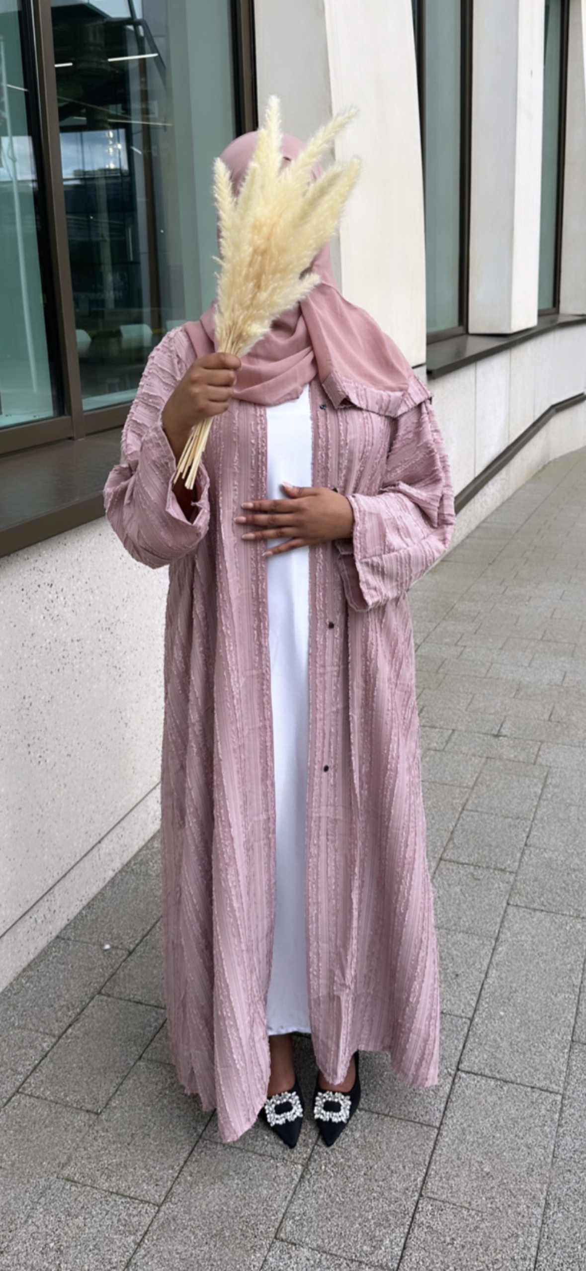 coral stripe abaya