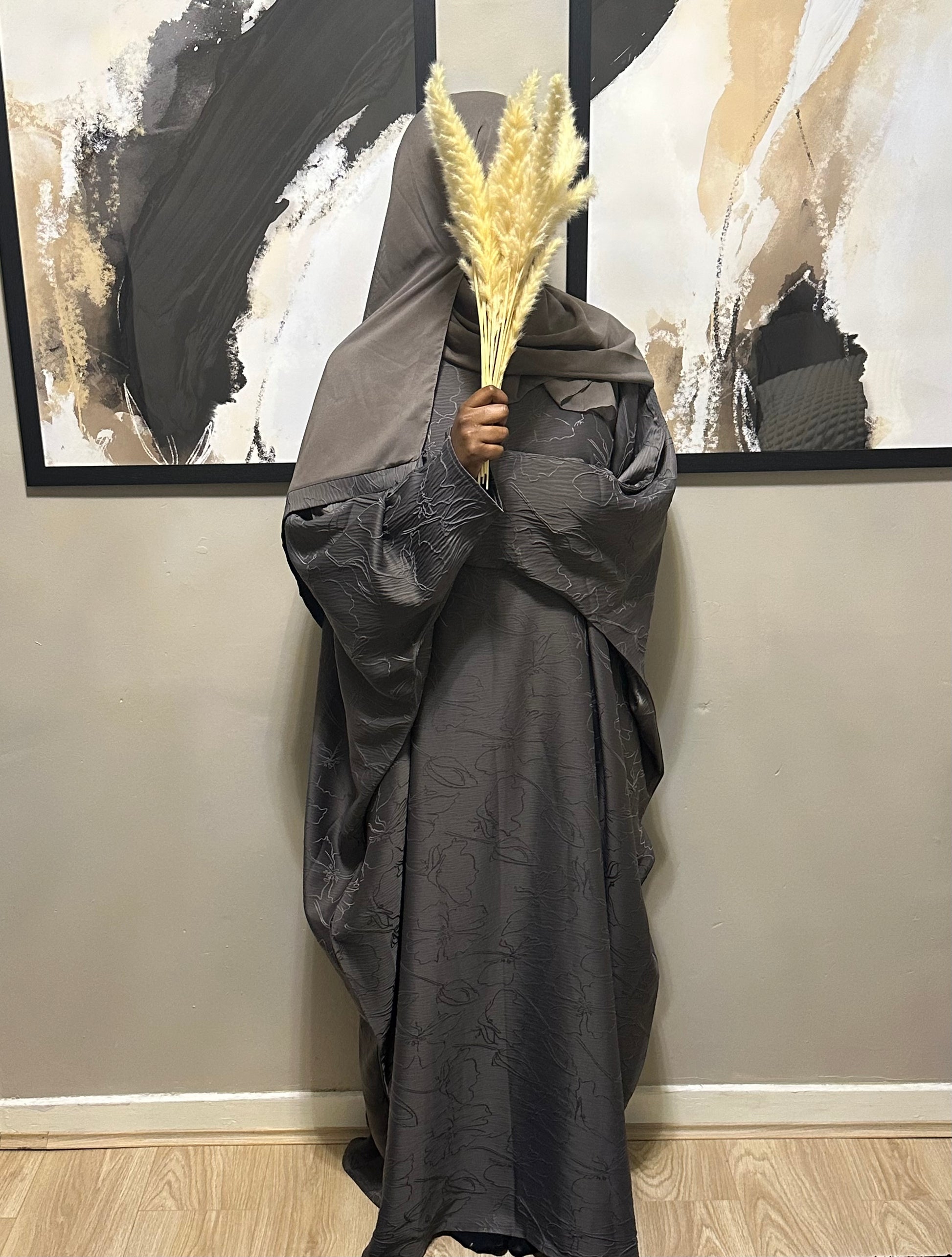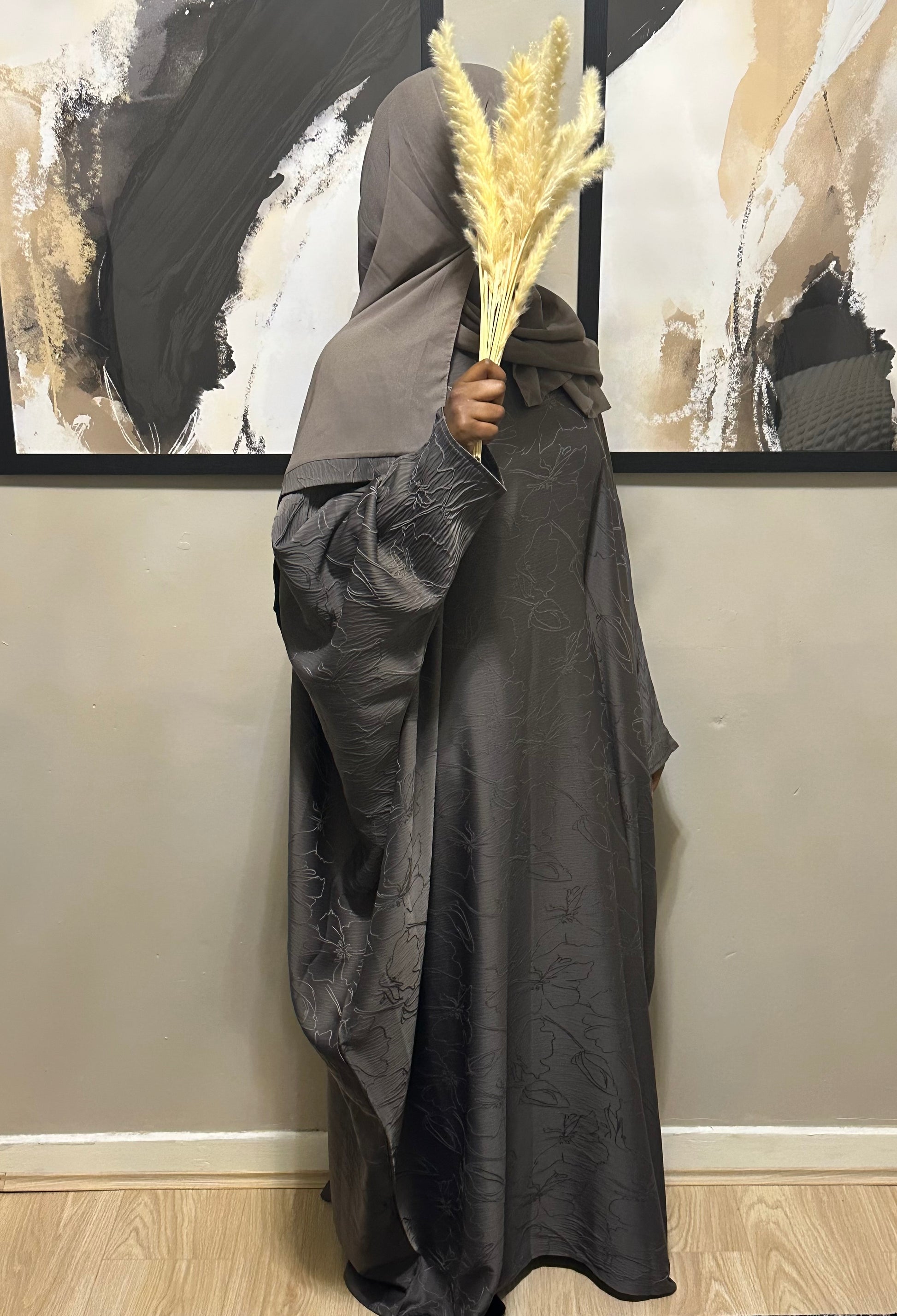 charcoal jacquard batwing abaya