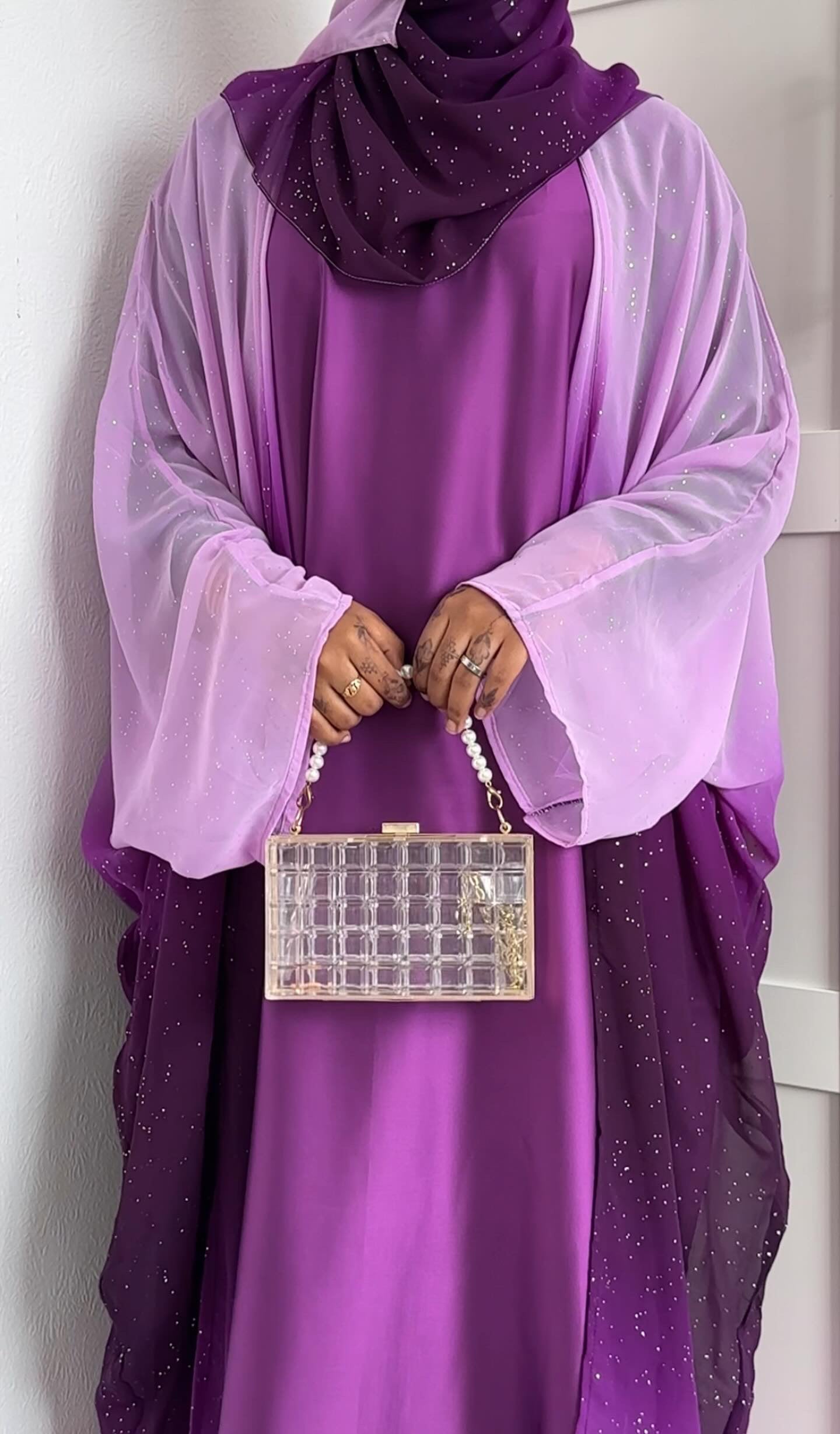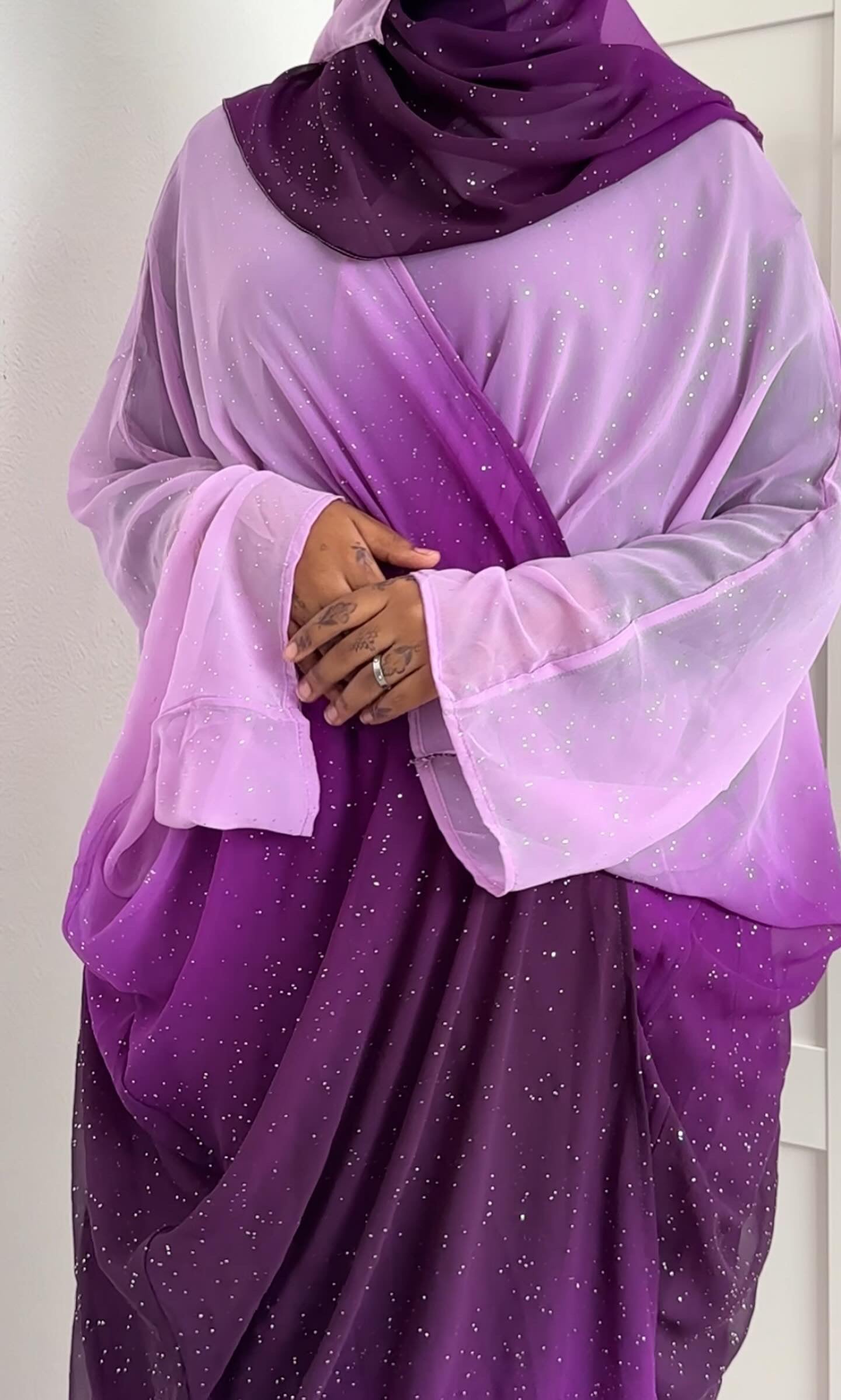 lilac ombre glitter abaya
